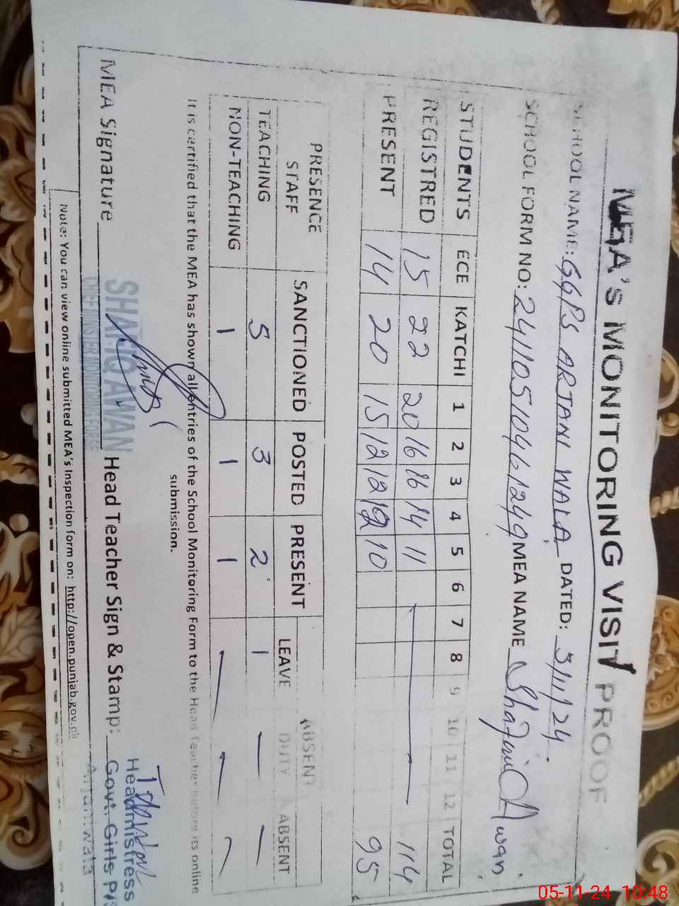| EMIS Code: 36410423 | Name of School: GGPS ARJANI WALA NO.1 SARAI SIDHU | |||