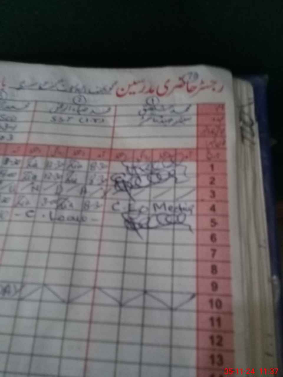 | CNIC | Full Name | Designation | R/C | Absence During Last Calender Month |