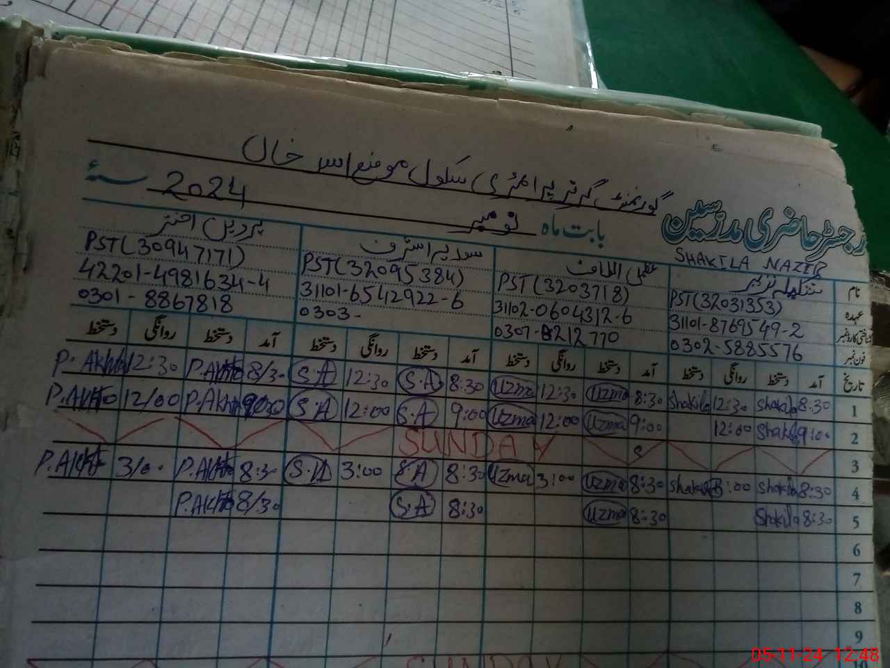 | Name: SH**** NA**** Designation: (School Headmaster's/Headmistress's) PST Phone/Cell Number: 03**** |