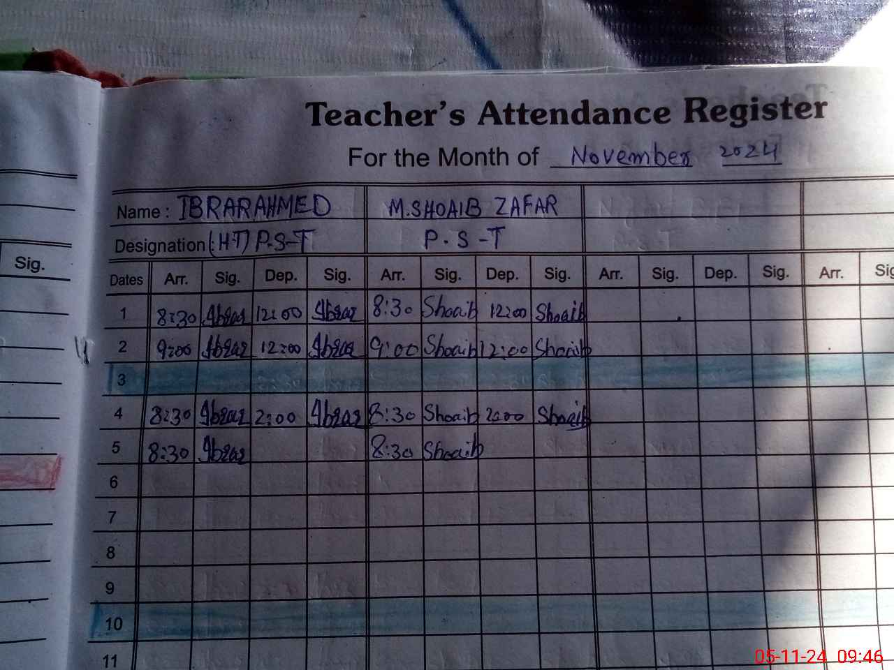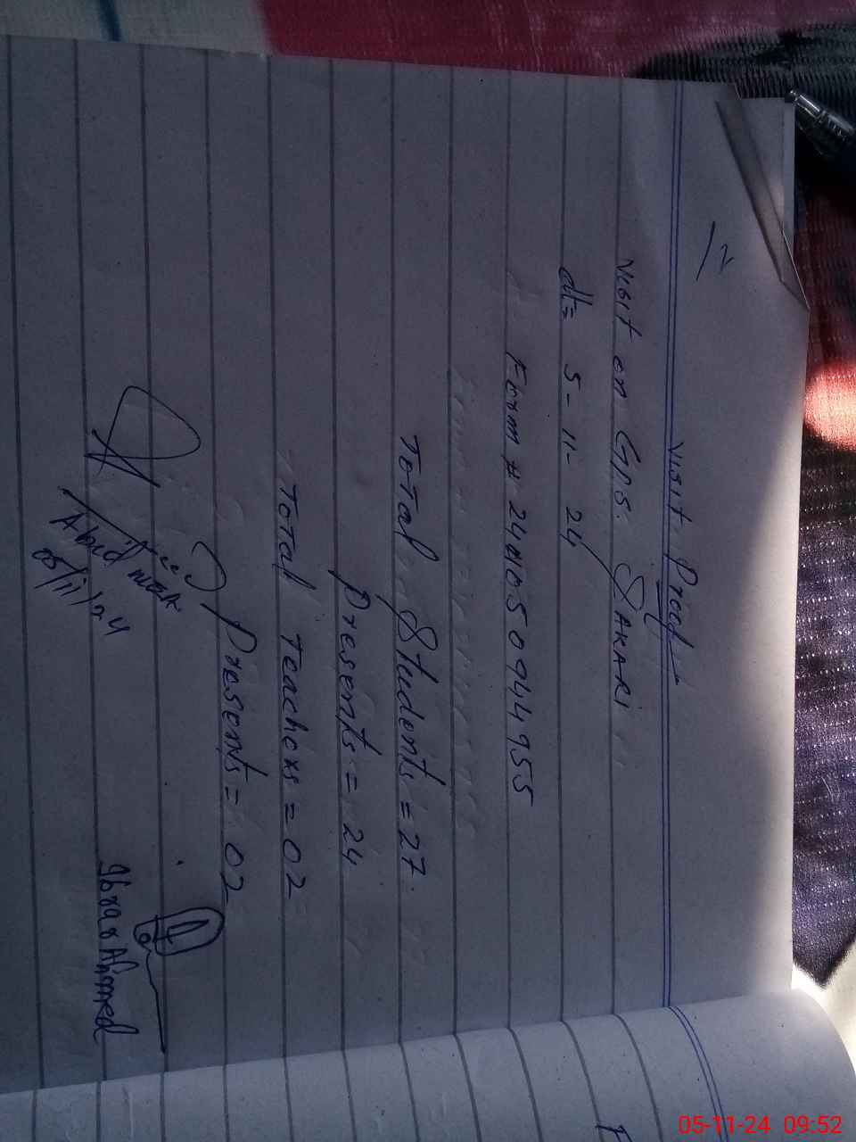 | Monitoring Date: 05-11-2024 | Start Time: 05-11-2024 09:35 AM | End Time: 05-11-2024 09:55 AM | Name of MEA: Rt**** Ab**** | |