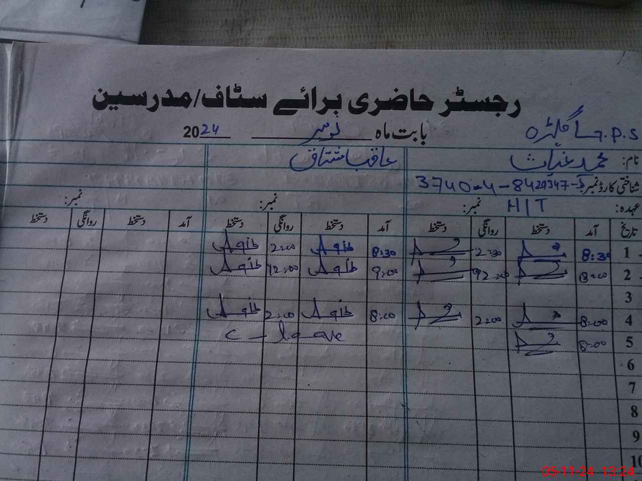 | CNIC | Full Name | Designation | R/C | Absence During Last Calender Month |