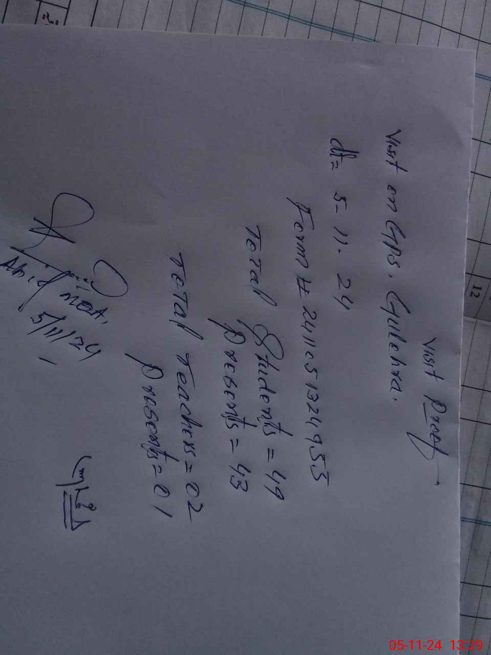 | Attendance Register | Head Teacher | MEA with School | Visit Proof |