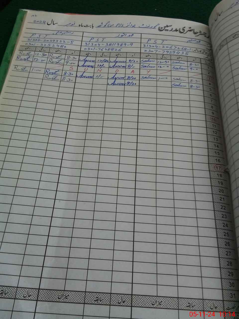 | CNIC | Full Name | Designation | R/C | Absence During Last Calender Month |