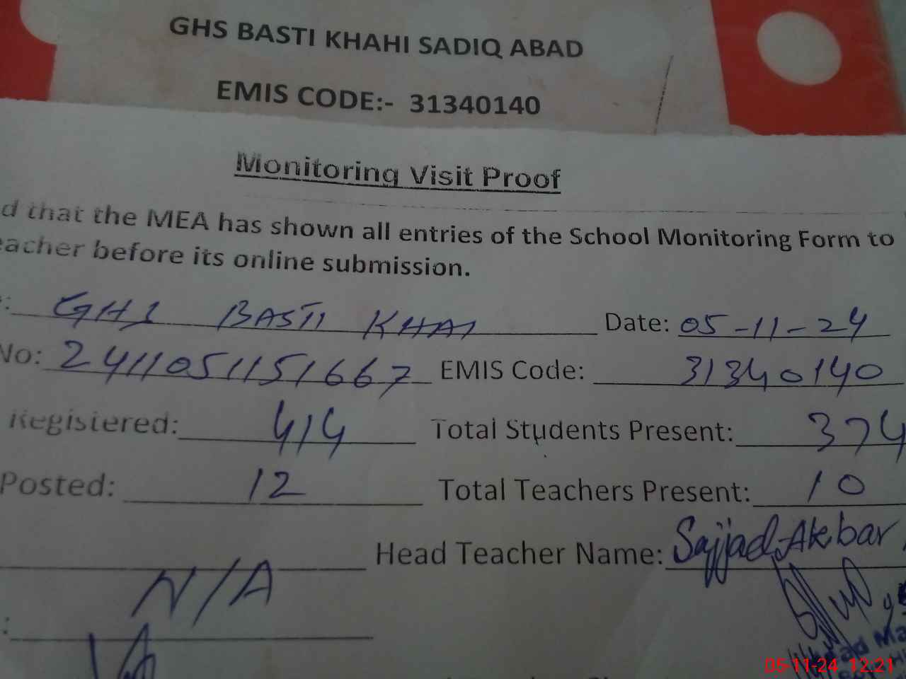 | EMIS Code: 31340140 | Name of School: GHS BASTI KHAHI | |||