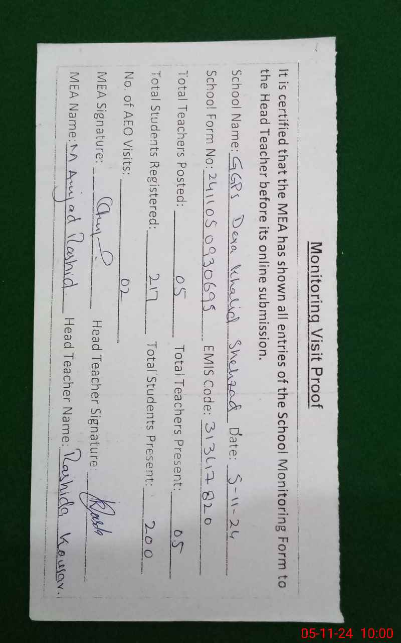 | EMIS Code: 31340820 | Name of School: GGPS DERA KHALID SHAHZAD | |||