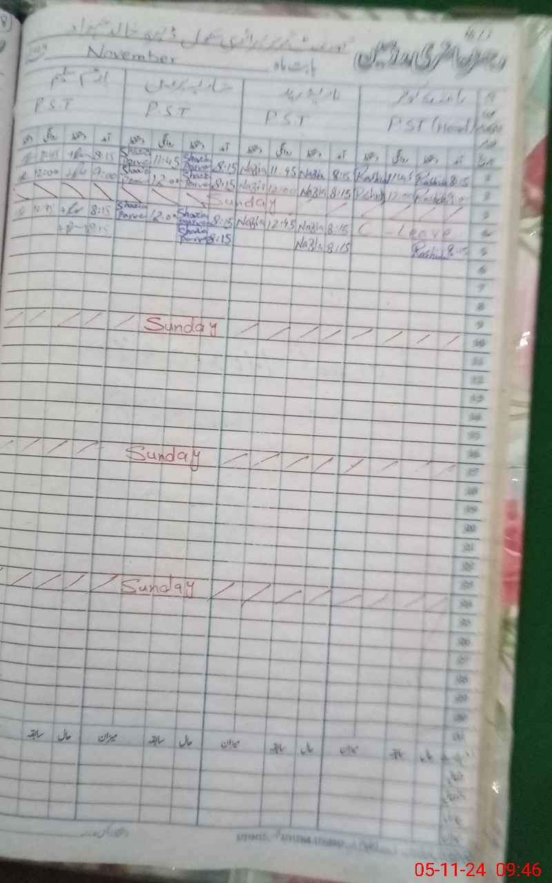 | CNIC | Full Name | Designation | R/C | Absence During Last Calender Month |