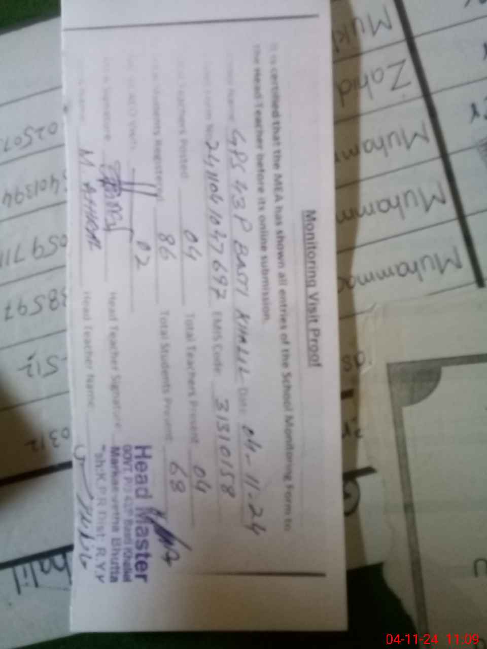 | Name: Ha**** Mu**** Hu**** Designation: (School Headmaster's/Headmistress's) PST Phone/Cell Number: 03**** |