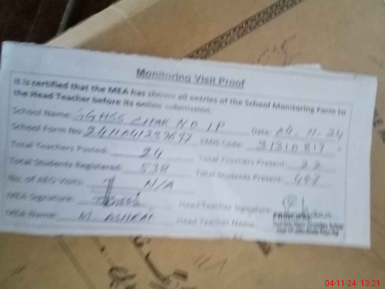 | EMIS Code: 31310817 | Name of School: GGHSS CHAK NO. 1/P | |||