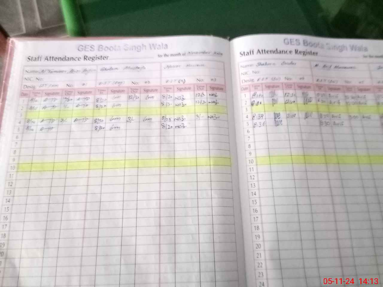 | CNIC | Full Name | Designation | R/C | Absence During Last Calender Month |