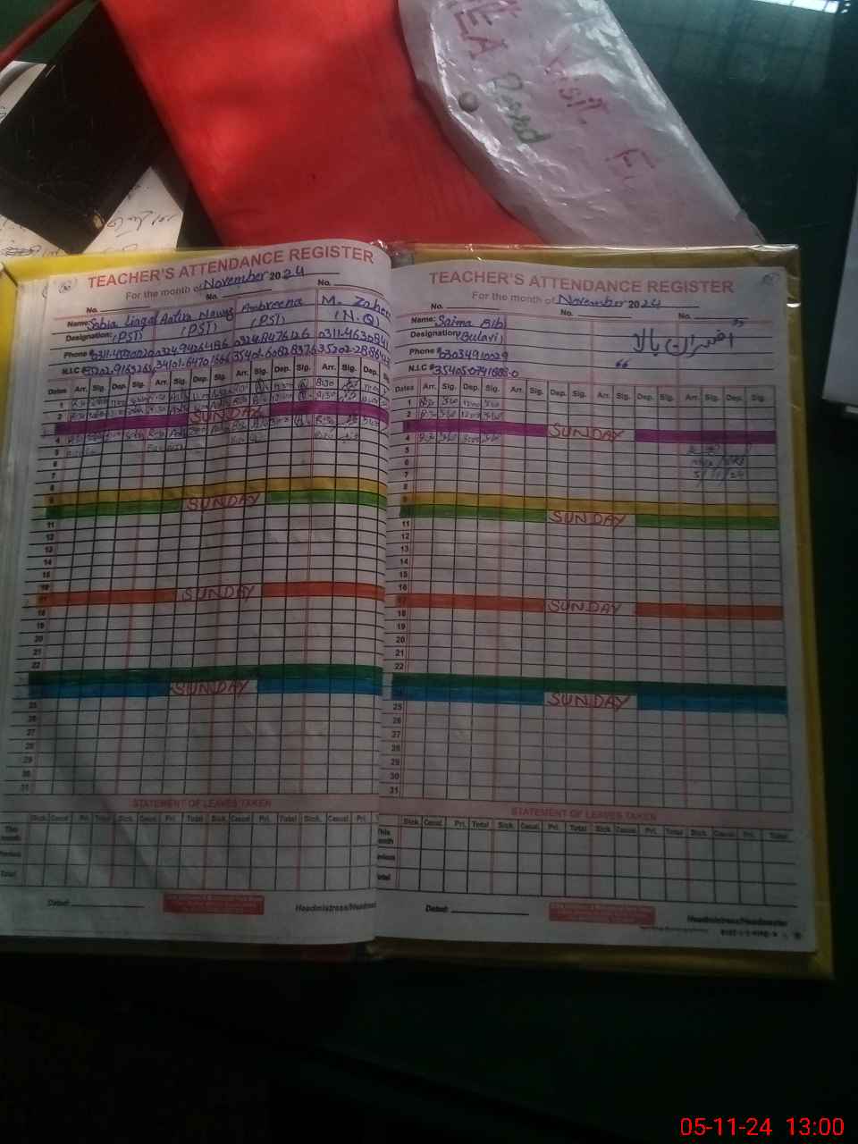 | CNIC | Full Name | Designation | R/C | Absence During Last Calender Month |