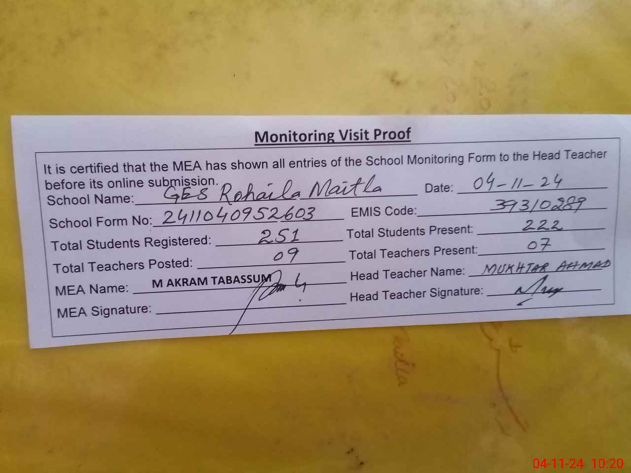 | EMIS Code: 39310289 | Name of School: GES ROHAILA MAITLA | |||