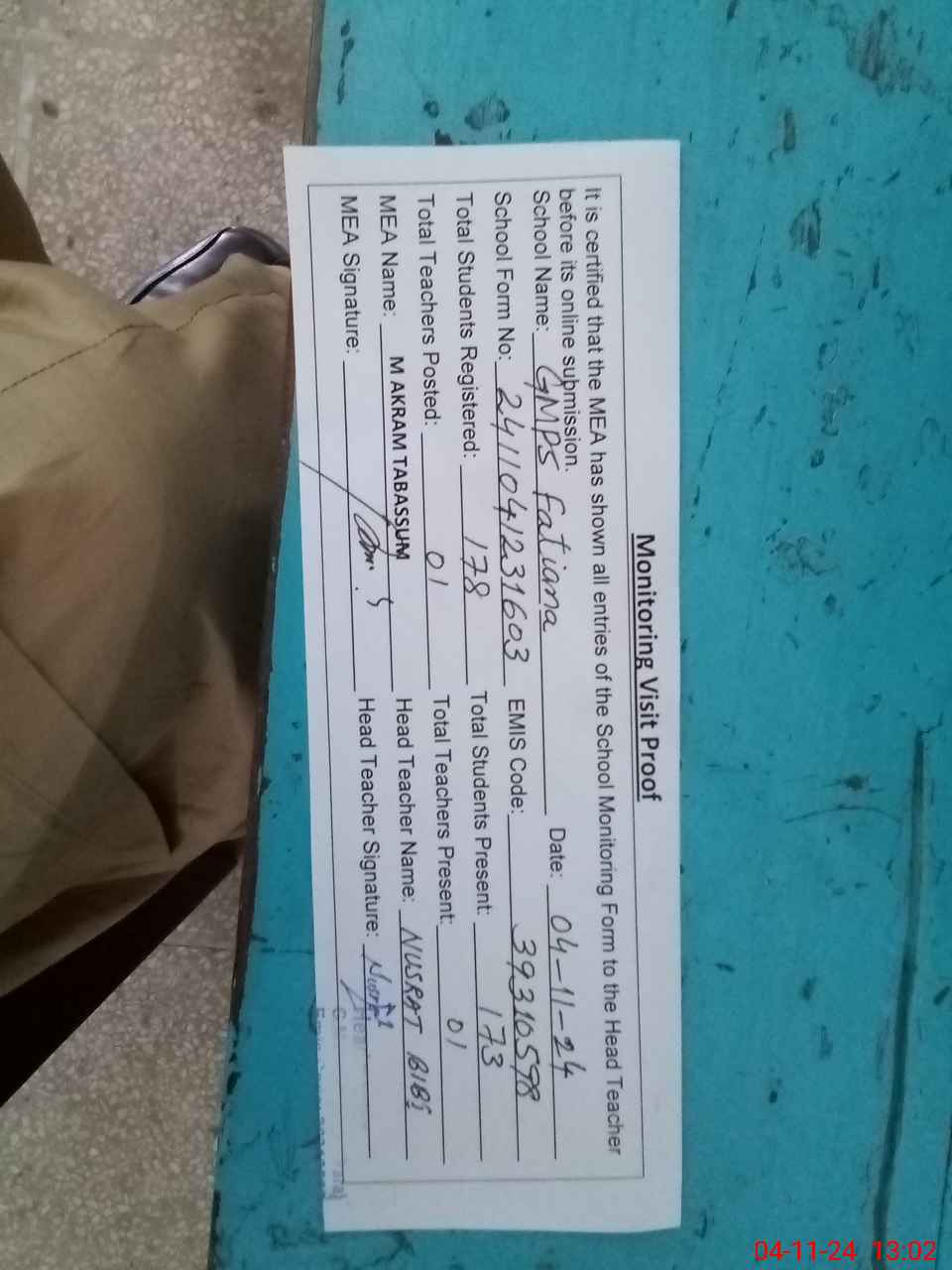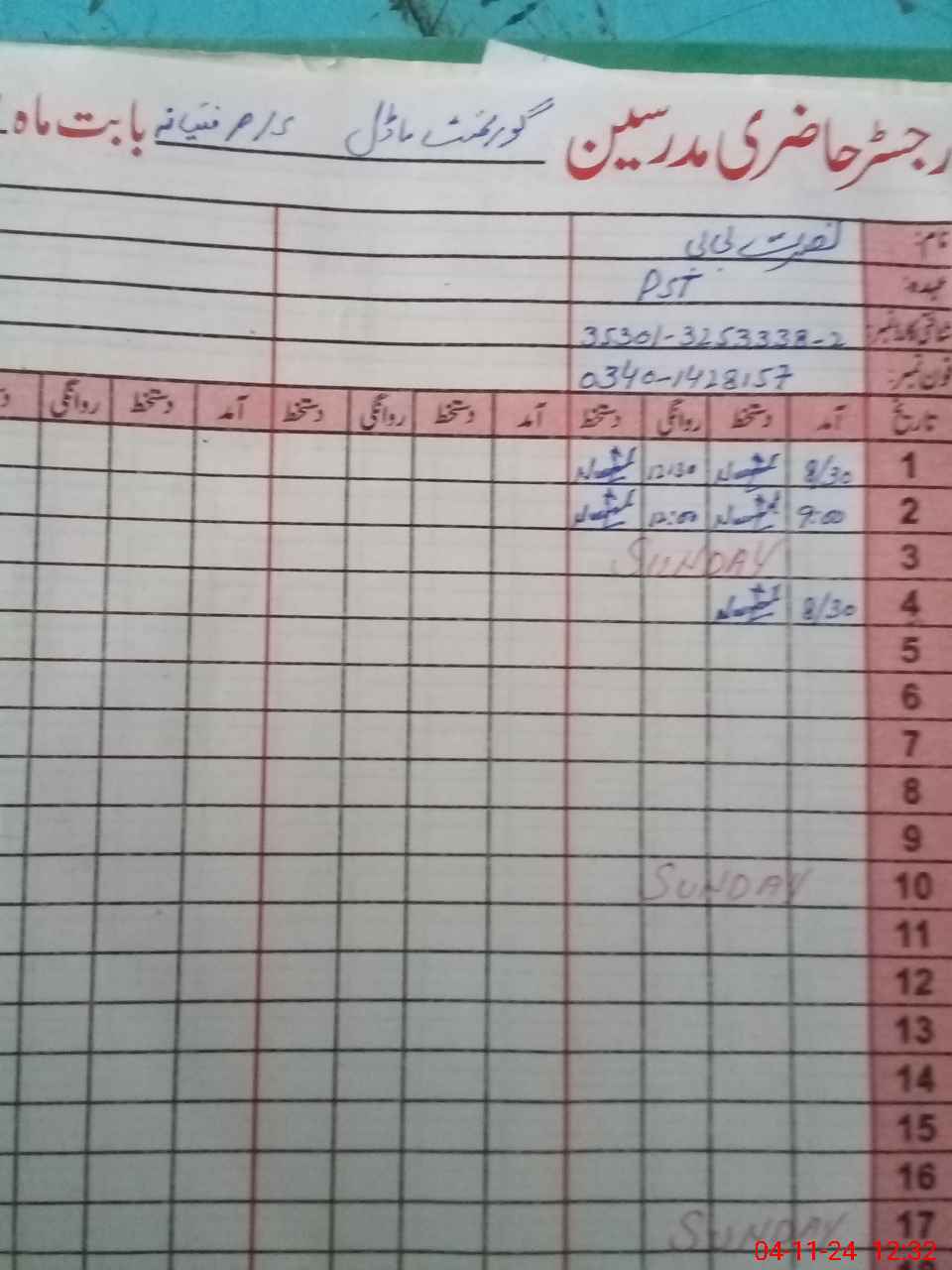 | Name: Nu**** Bi**** Designation: (School Headmaster's/Headmistress's) PST Phone/Cell Number: 03**** |