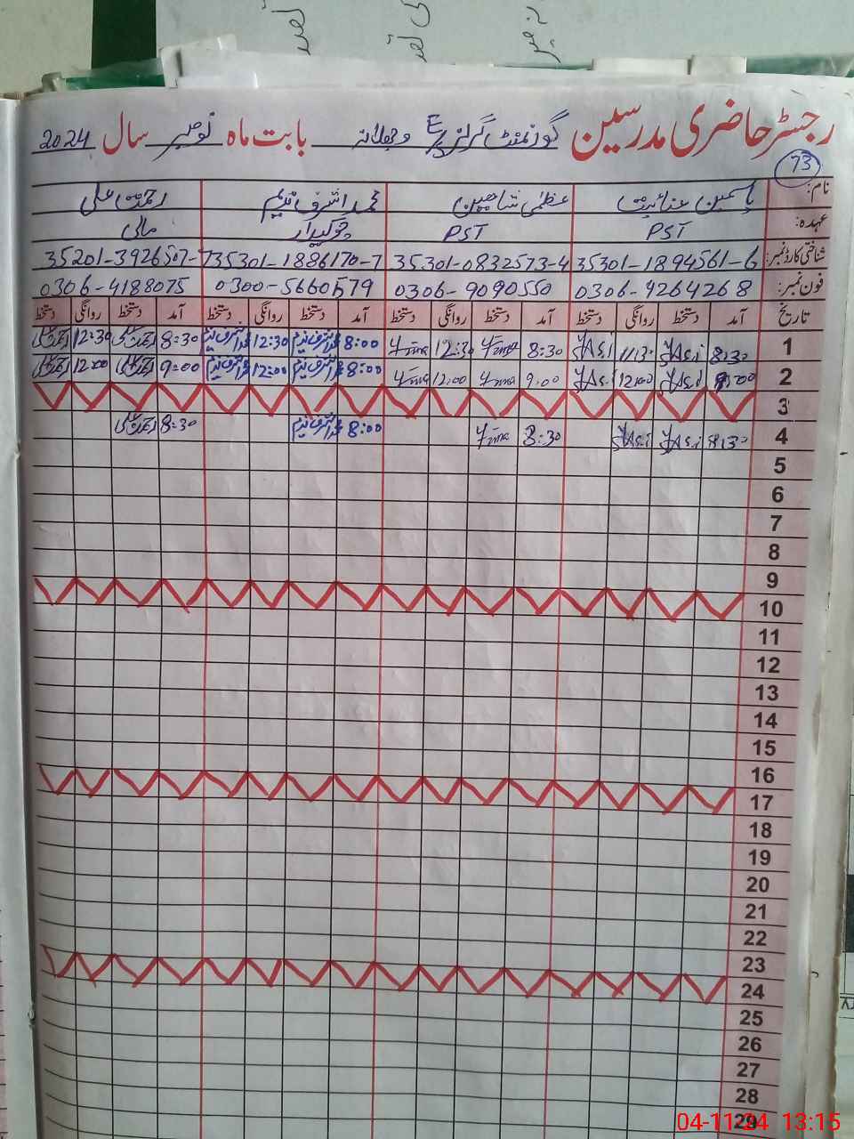 | CNIC | Full Name | Designation | R/C | Absence During Last Calender Month |