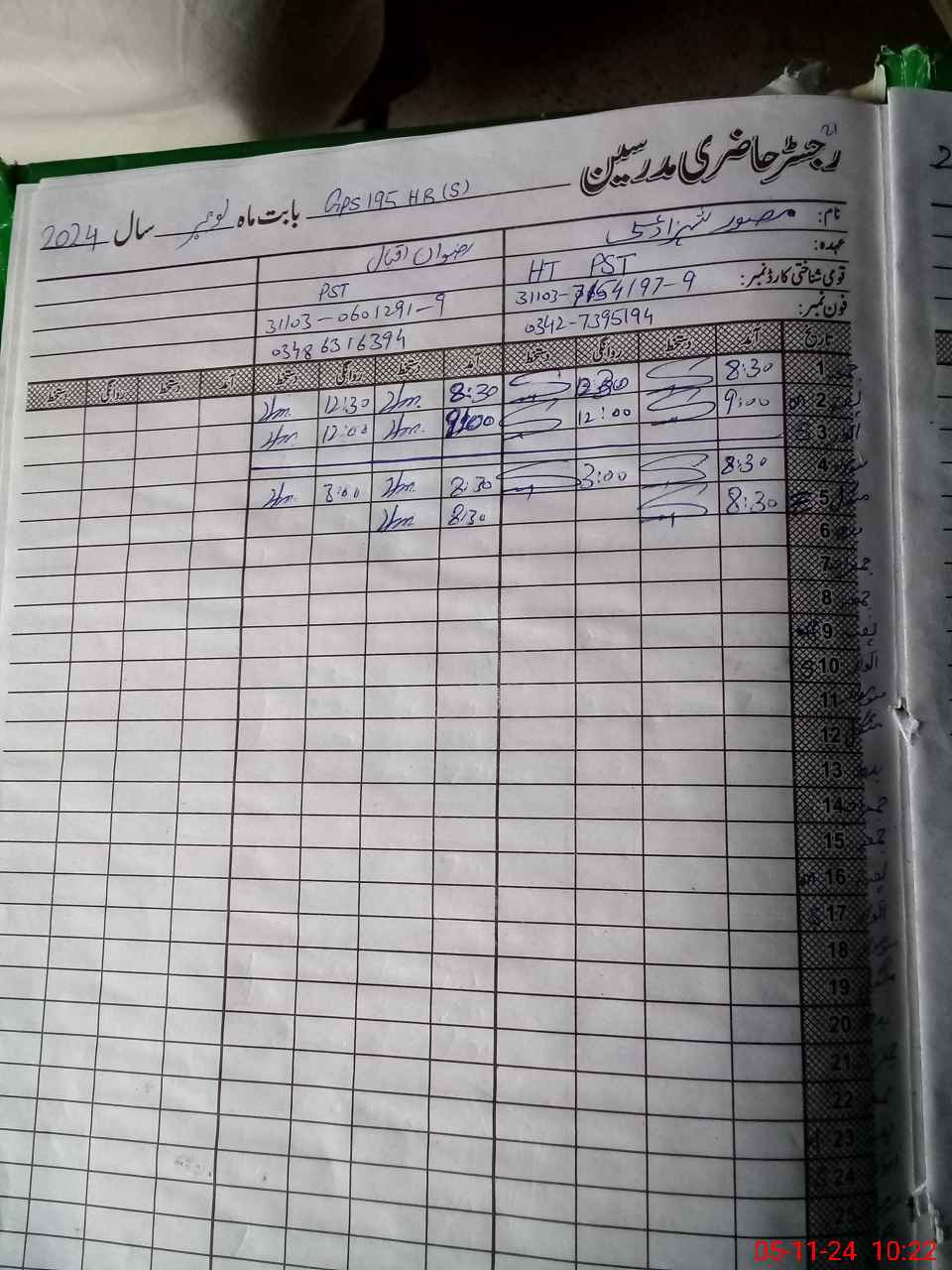 | CNIC | Full Name | Designation | R/C | Absence During Last Calender Month |