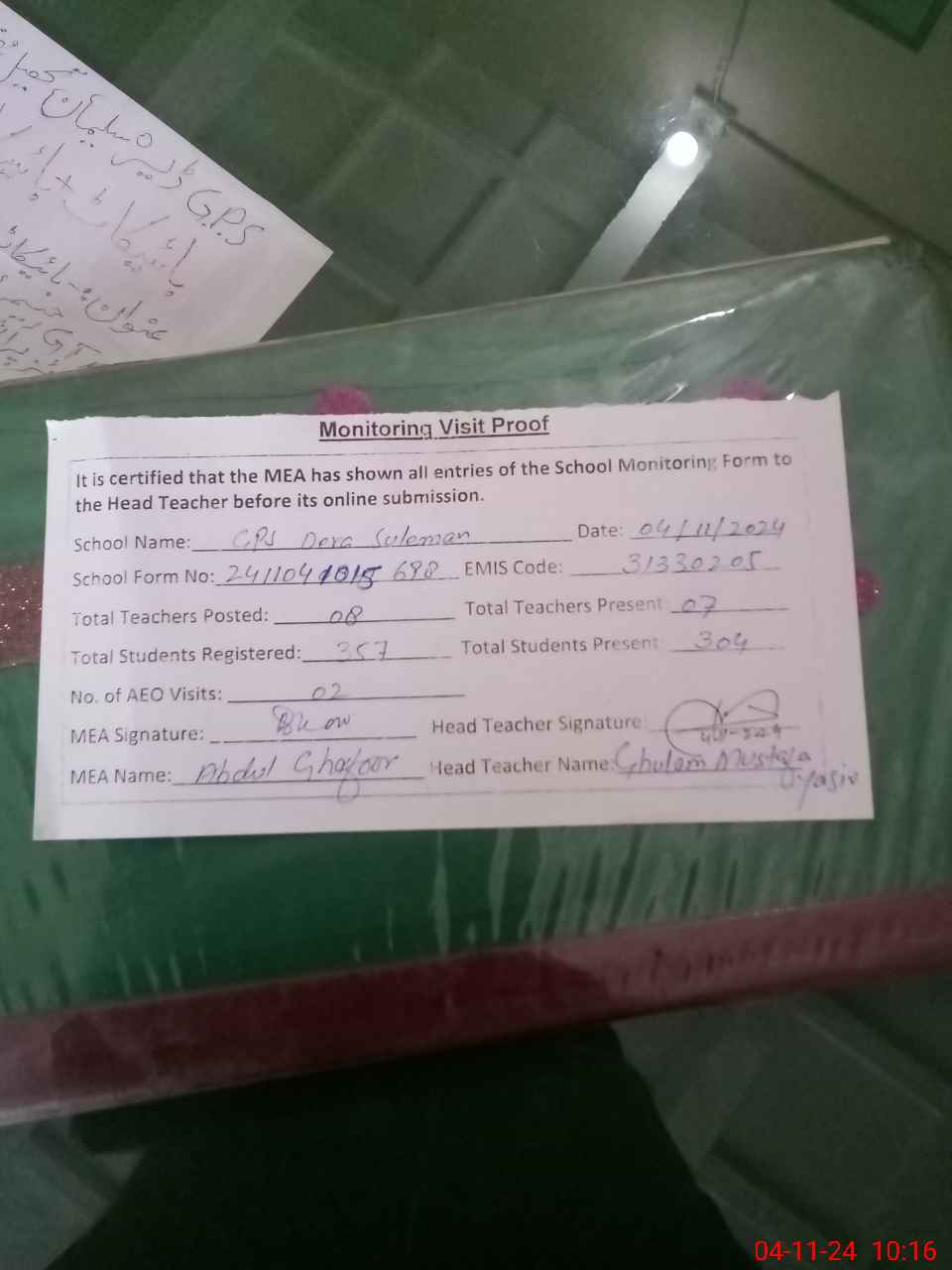 | EMIS Code: 31330205 | Name of School: GPS DERA SULEMAN | |||