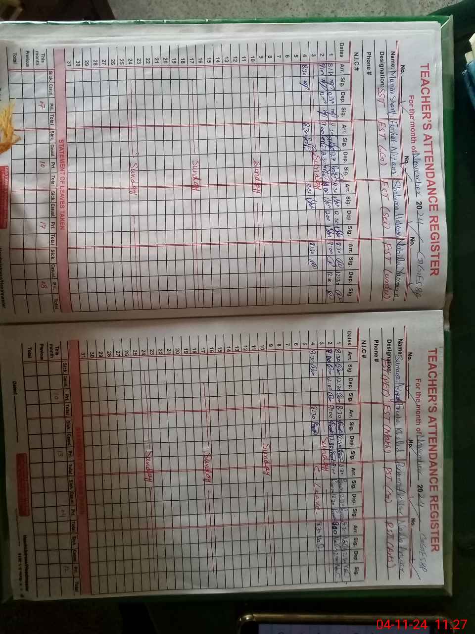 | 31**** | Pa**** Ak**** | PST | Regular | 2 | 0 | 0 | 0 | 0 | 0 | 0 | 0 | 2 | Casual |