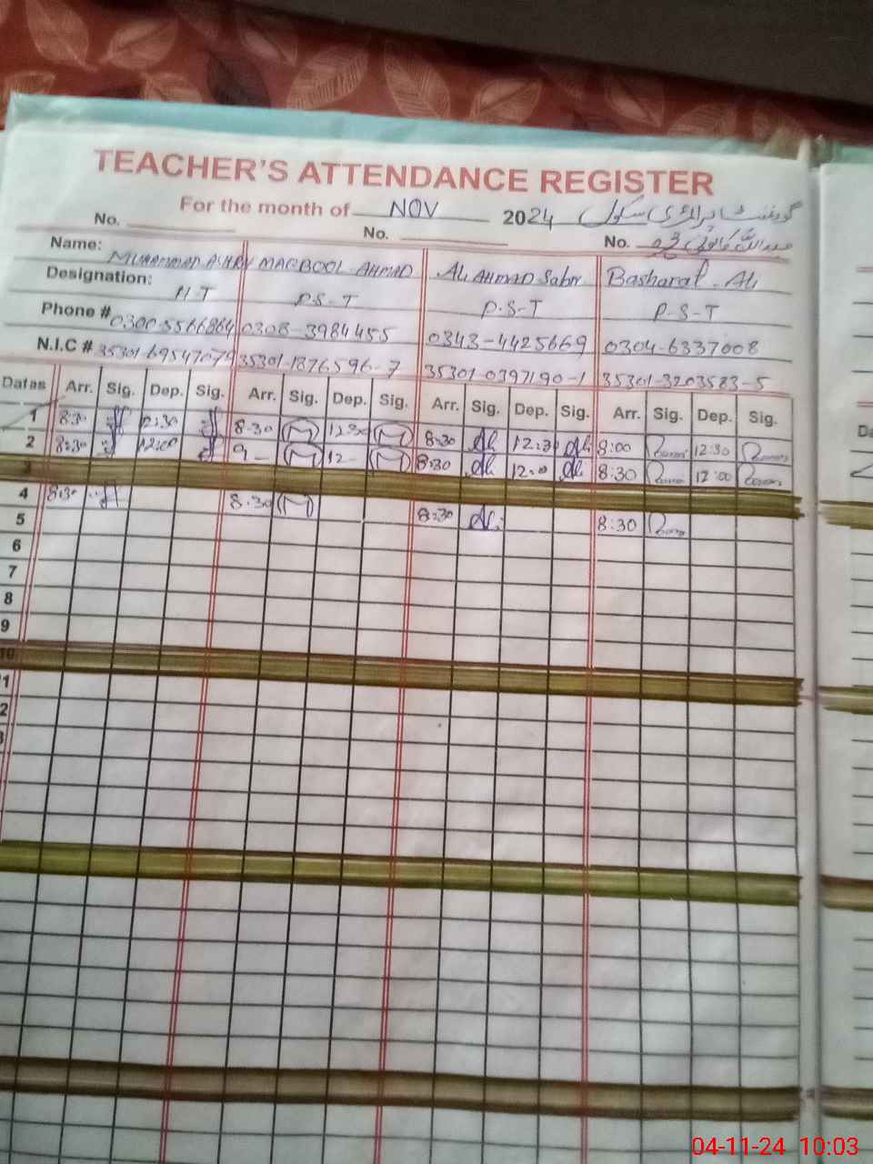 | Name: Mu**** As**** Designation: (School Headmaster's/Headmistress's) PST Phone/Cell Number: 03**** |