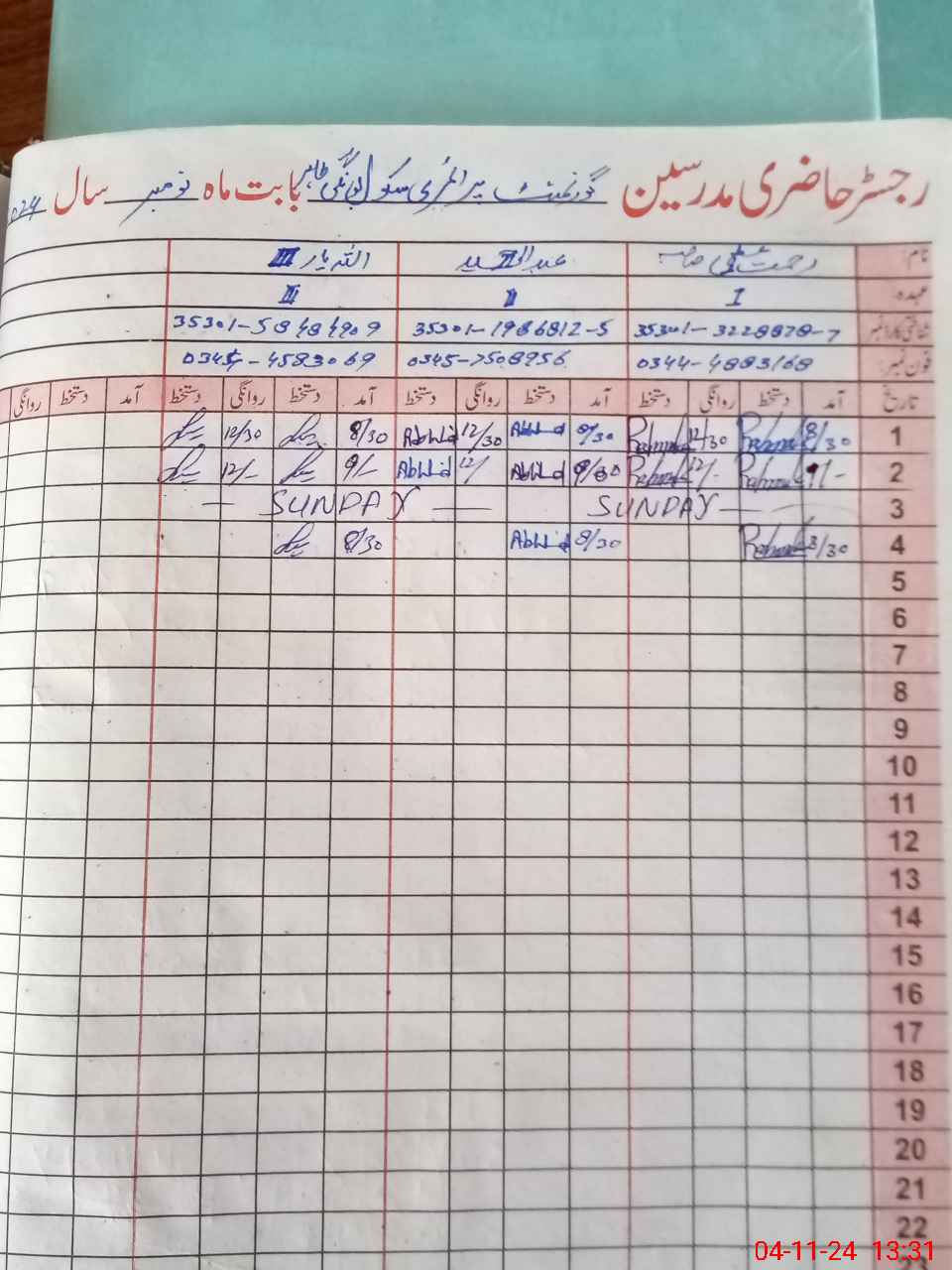 | Name: RA**** AL**** Designation: (School Headmaster's/Headmistress's) PST Phone/Cell Number: 03**** |