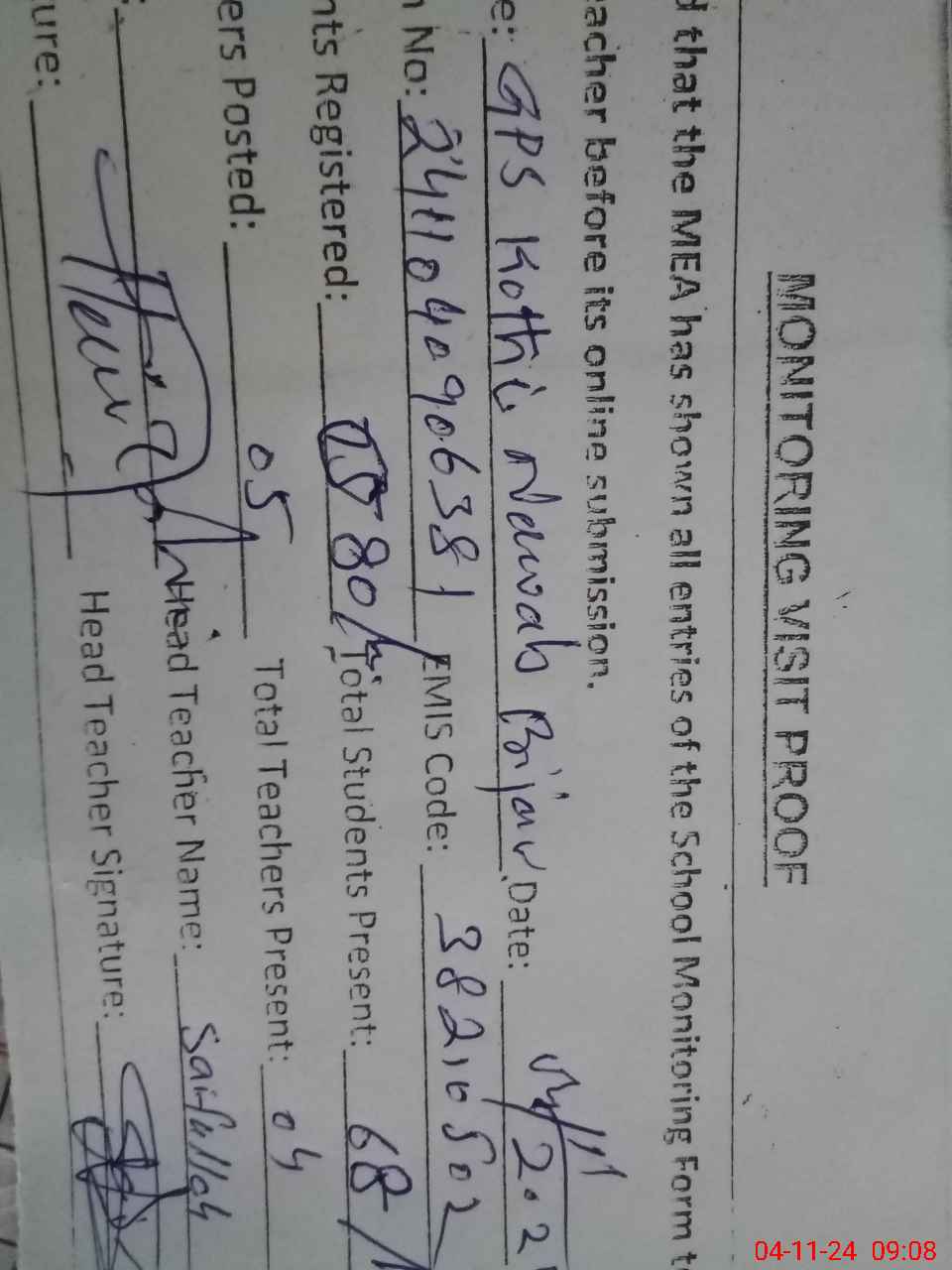 | EMIS Code: 38210502 | Name of School: GPS KOTHI NAWAB | |||