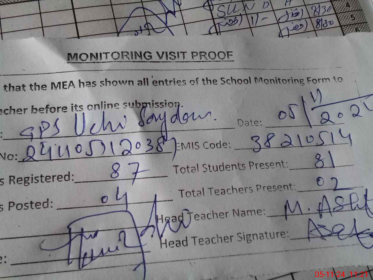 | EMIS Code: 38210514 | Name of School: GPS UCHI SAYEDAN | |||