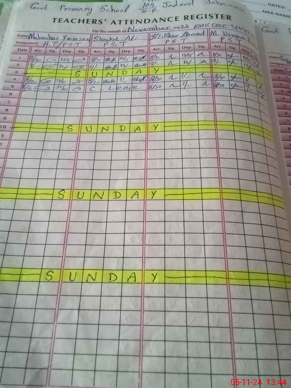 | Name: MU**** RA**** Designation: (School Headmaster's/Headmistress's) PST Phone/Cell Number: 03**** |