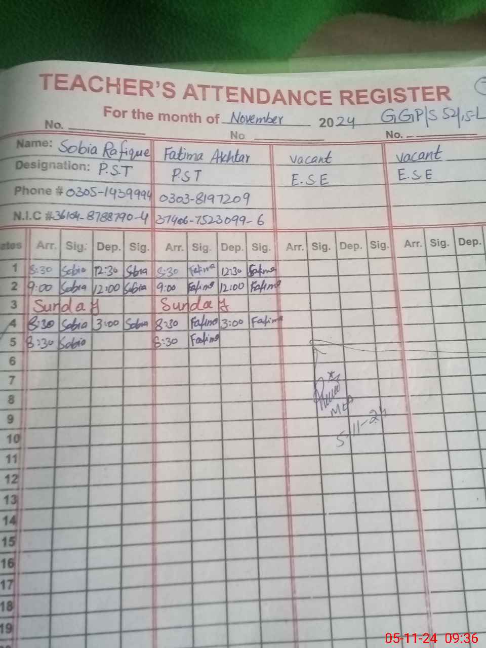 | Name: SO**** RA**** Designation: (School Headmaster's/Headmistress's) PST Phone/Cell Number: 03**** |
