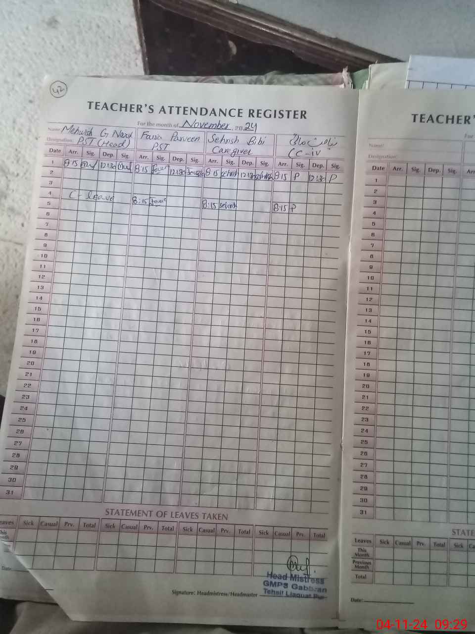 | Attendance Register | Head Teacher | MEA with School | Visit Proof |