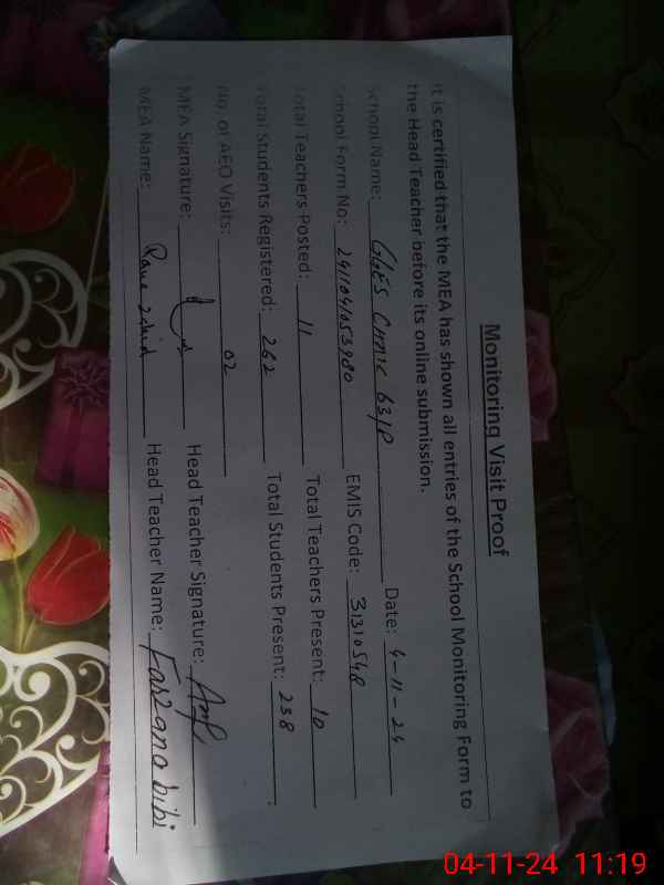 | Certified that this School was Inspected by the Undersigned MEA/DMO Today and the Information Stated Above is as Per Record. | |||||
