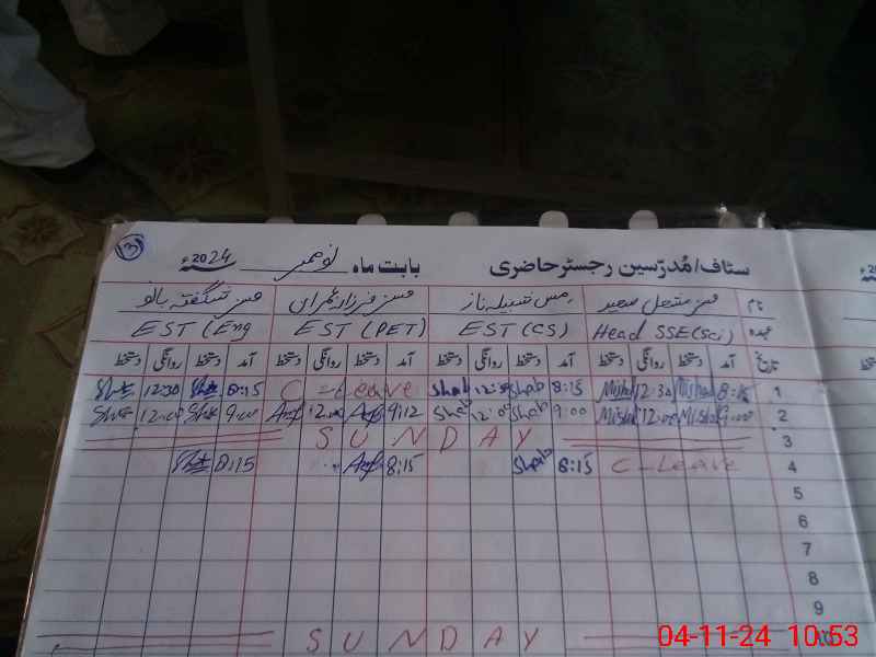 | CNIC | Full Name | Designation | R/C | Absence During Last Calender Month |