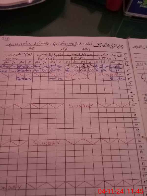 | 31**** | Ab**** Gh**** | Regular | 2 | 0 | 8 | 0 | 0 | 0 | 0 | 0 | 2 | Casual | |