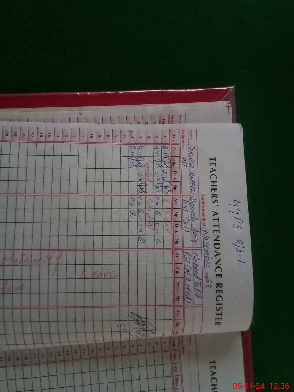 | 35**** | Na**** Ta**** | PST | Regular | 31 | 0 | 0 | 31 | 0 | 0 | 0 | 0 | 0 | Maternity |
