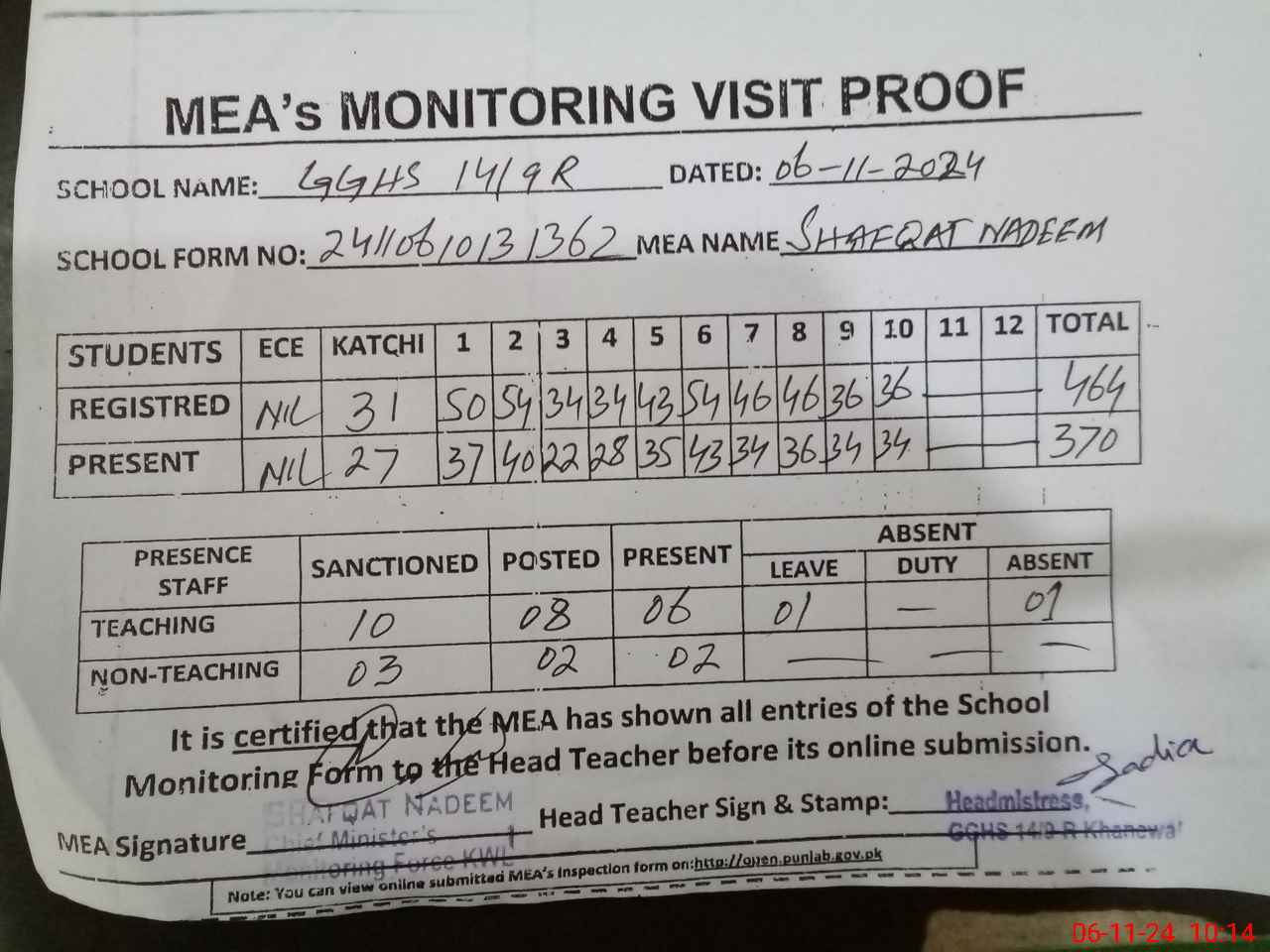 | EMIS Code: 36420123 | Name of School: GGHS 14/9-R, KACHA KHUH | |||