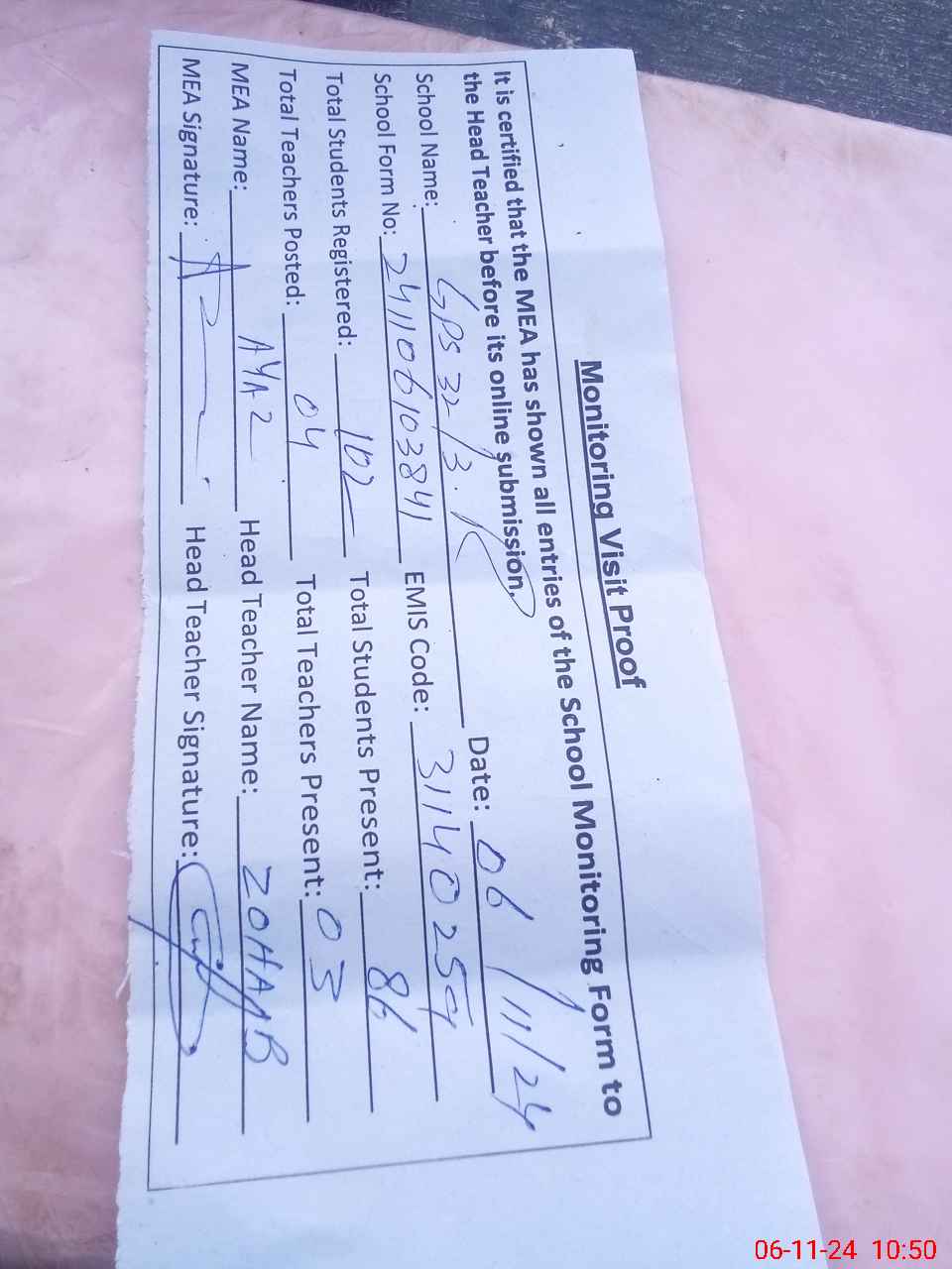 | EMIS Code: 31140259 | Name of School: GPS CHAK NO.32/3-R | |||