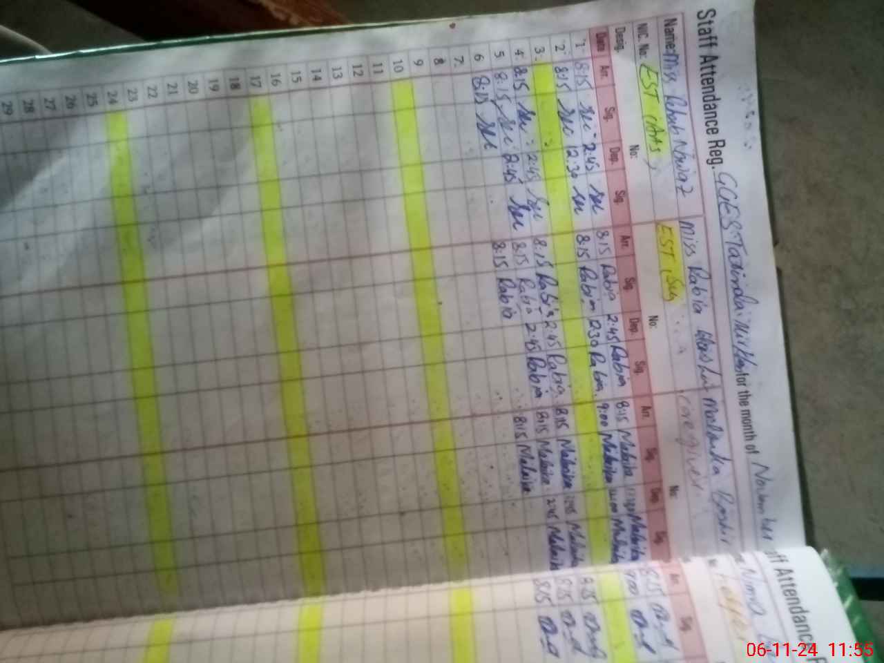 | Monitoring Date: 06-11-2024 | Start Time: 06-11-2024 11:32 AM | End Time: 06-11-2024 12:09 PM | Name of MEA: Mu**** Sa**** Ul**** Sa**** | |