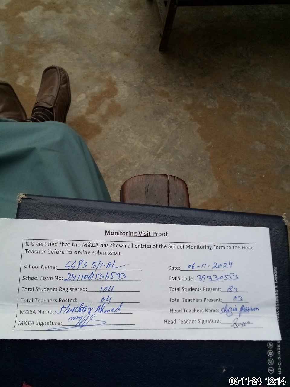 | Attendance Register | Head Teacher | MEA with School | Visit Proof |