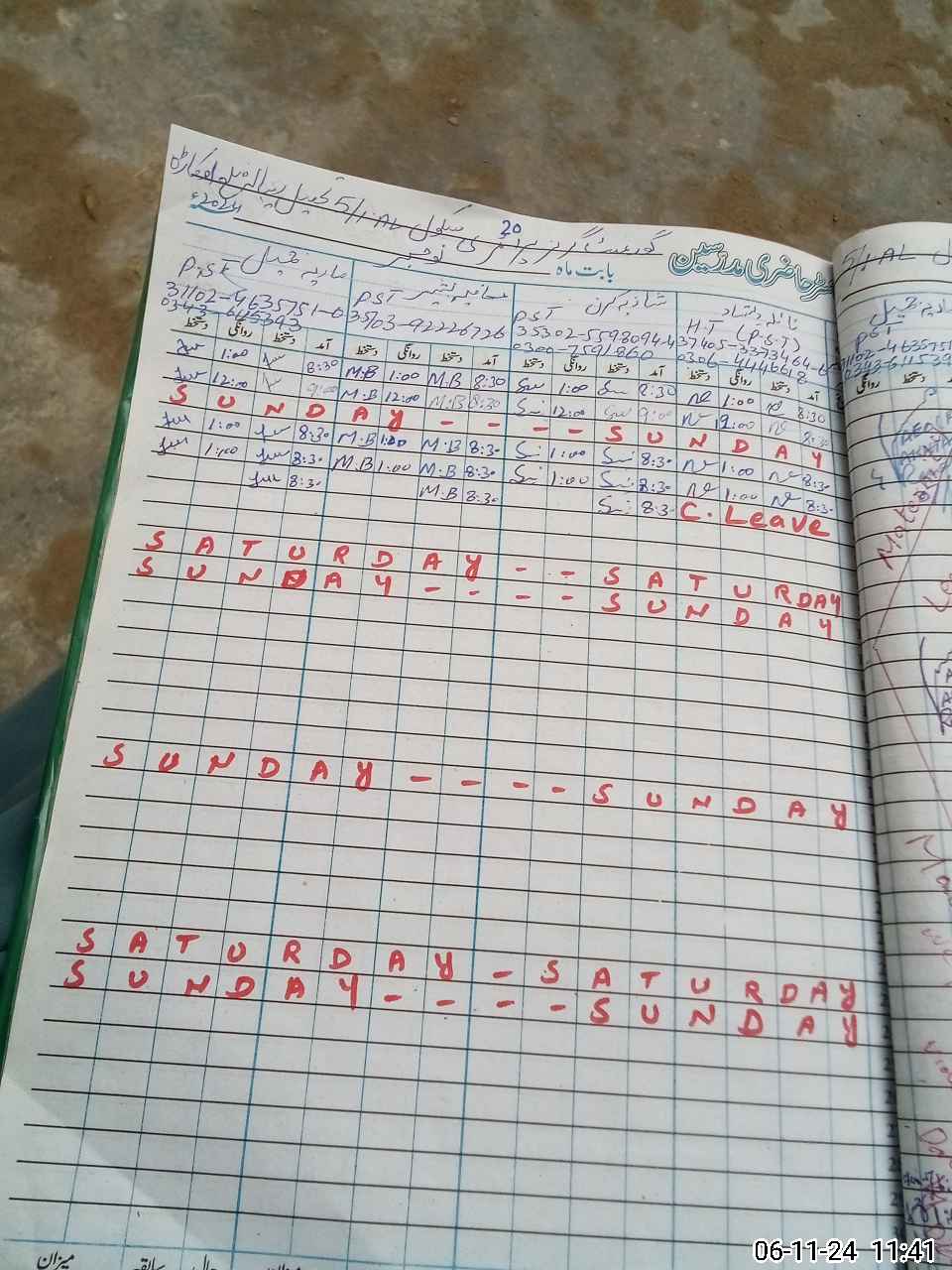 | Leave | Duty | Absent | Maternity | Medical | Ex- Pak |