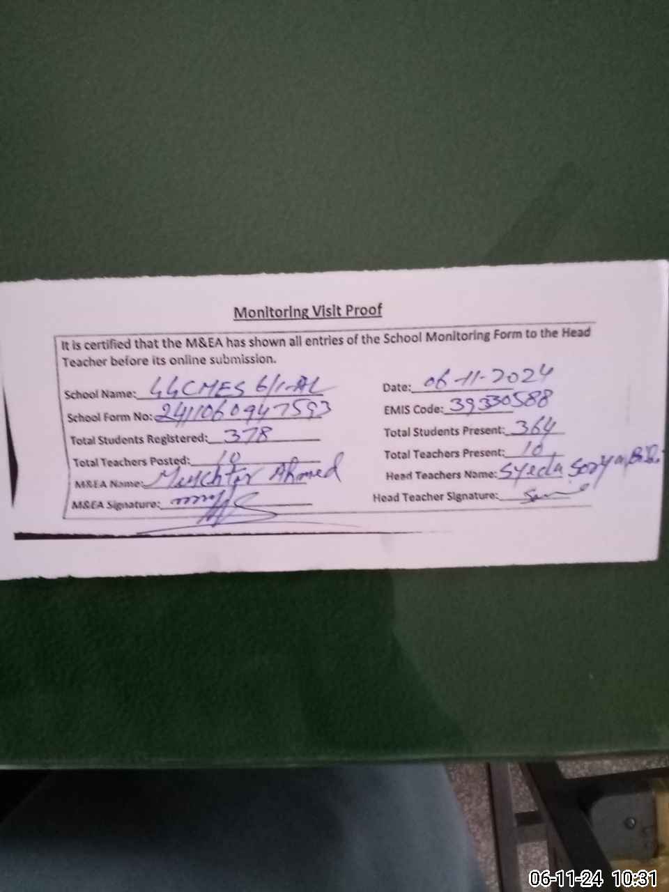 | EMIS Code: 39330588 | Name of School: GGCMES 6-1AL | |||