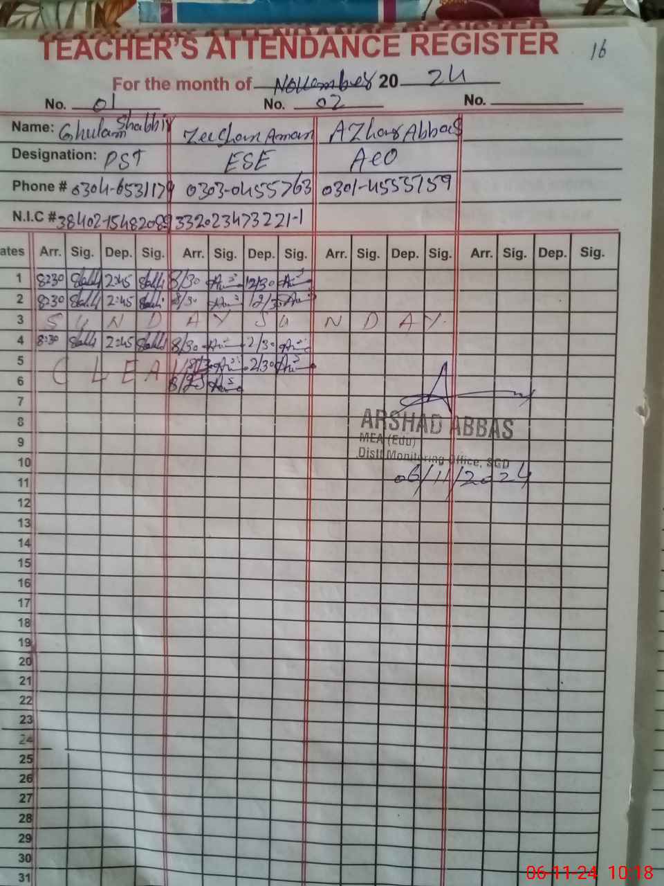 | Name: ZE**** AM**** Designation: (School Headmaster's/Headmistress's) ESE (SCI MATH ) Phone/Cell Number: 03**** |