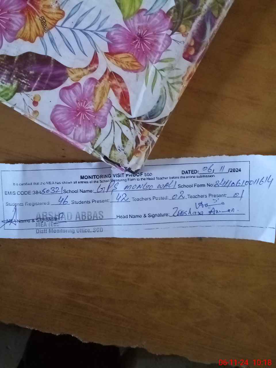 | Attendance Register | Head Teacher | MEA with School | Visit Proof |