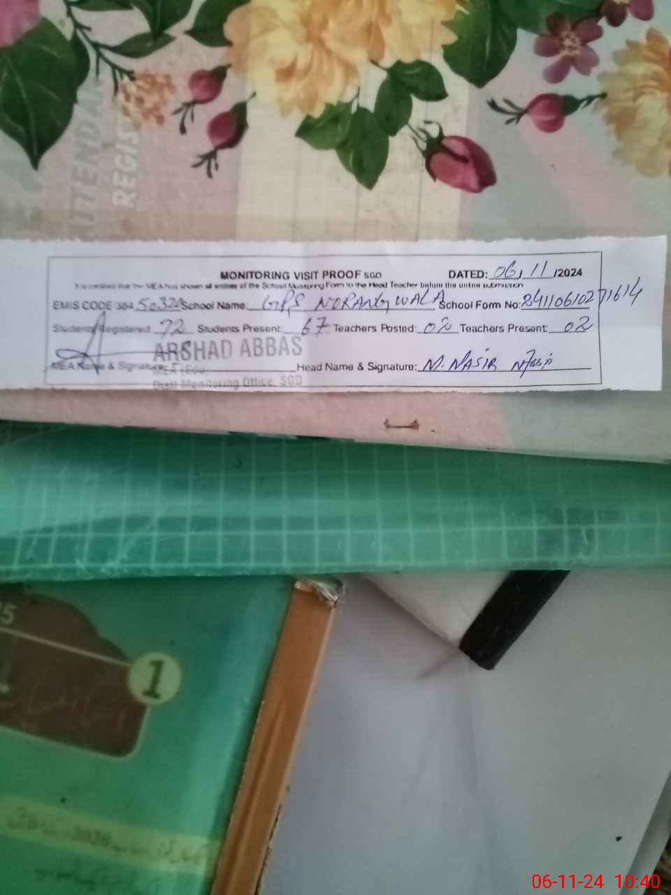| Attendance Register | Head Teacher | MEA with School | Visit Proof |