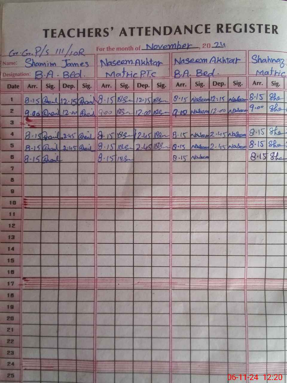 | Name: SH**** JA**** Designation: (School Headmaster's/Headmistress's) PST Phone/Cell Number: 03**** |