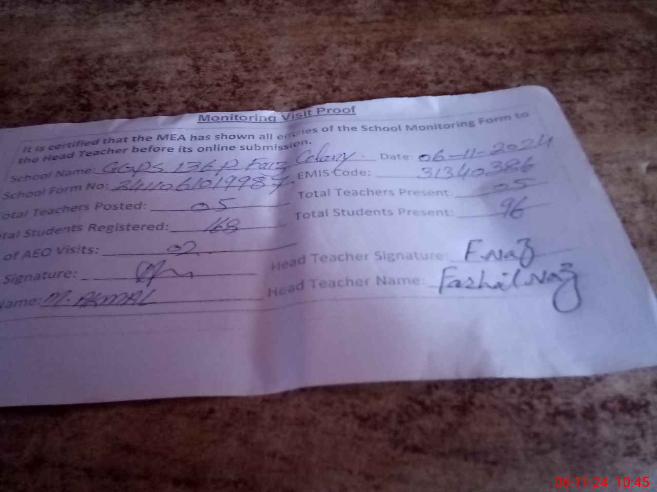 | EMIS Code: 31340386 | Name of School: GGPS 136/P FAIZ COLONY | |||