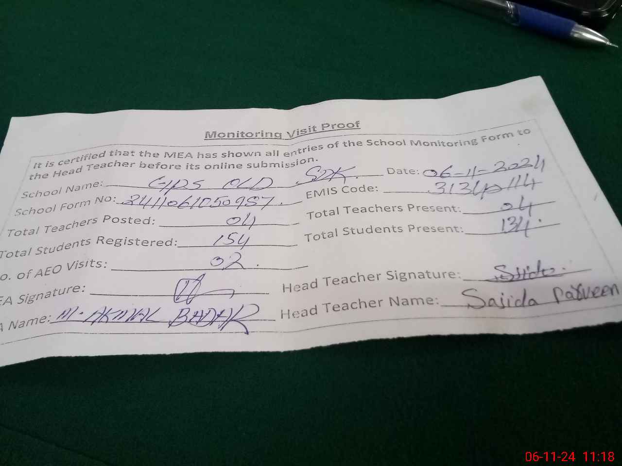 | Monitoring Date: 06-11-2024 | Start Time: 06-11-2024 10:50 AM | End Time: 06-11-2024 11:18 AM | Name of MEA: Mu**** Ak**** Ba**** | |
