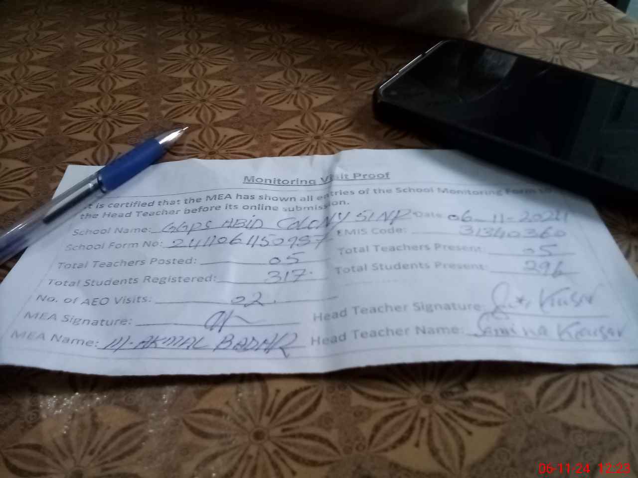 | EMIS Code: 31340360 | Name of School: GGPS ABID COLONY 51 NP | |||