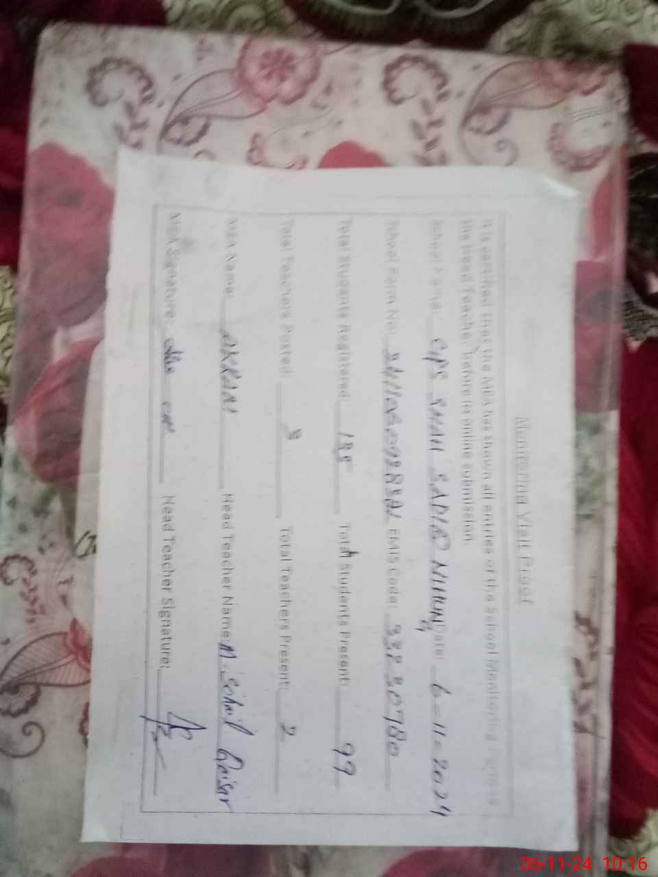 | EMIS Code: 33230780 | Name of School: GPS SHAH SADIQ NIHUNG | |||