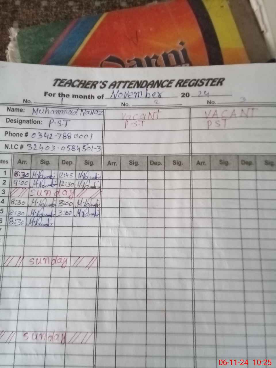 | Name: Wa**** Ab**** Designation: (School Headmaster's/Headmistress's) PST Phone/Cell Number: 03**** |