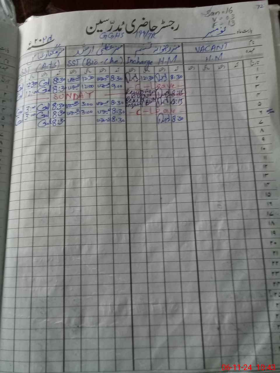 | CNIC | Full Name | Designation | R/C | Absence During Last Calender Month |