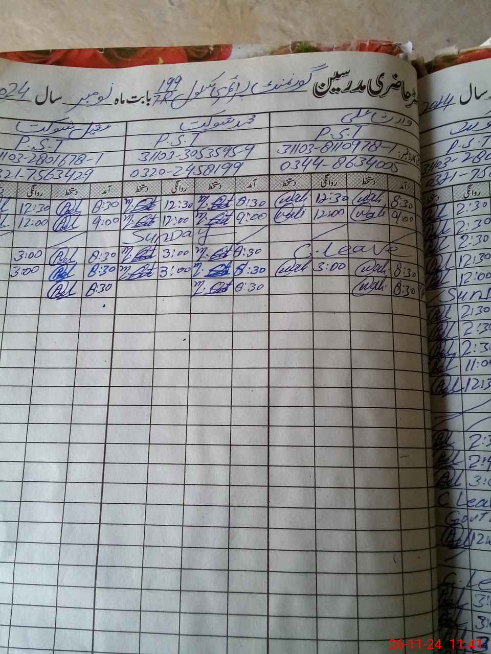 | CNIC | Full Name | Designation | R/C | Absence During Last Calender Month |