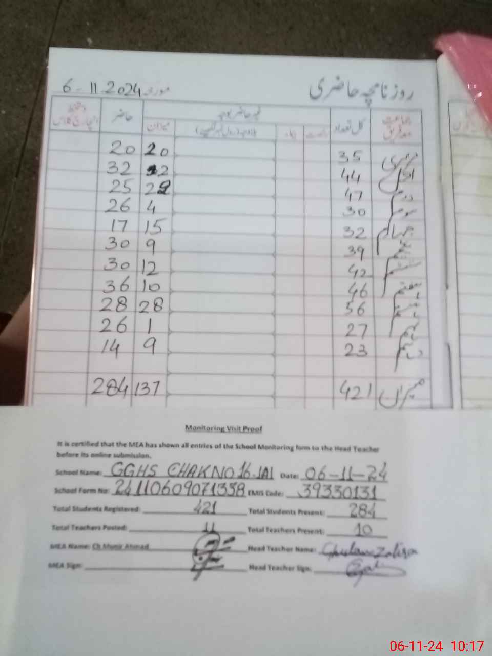| EMIS Code: 39330131 | Name of School: GGHS 16/1-AL | |||