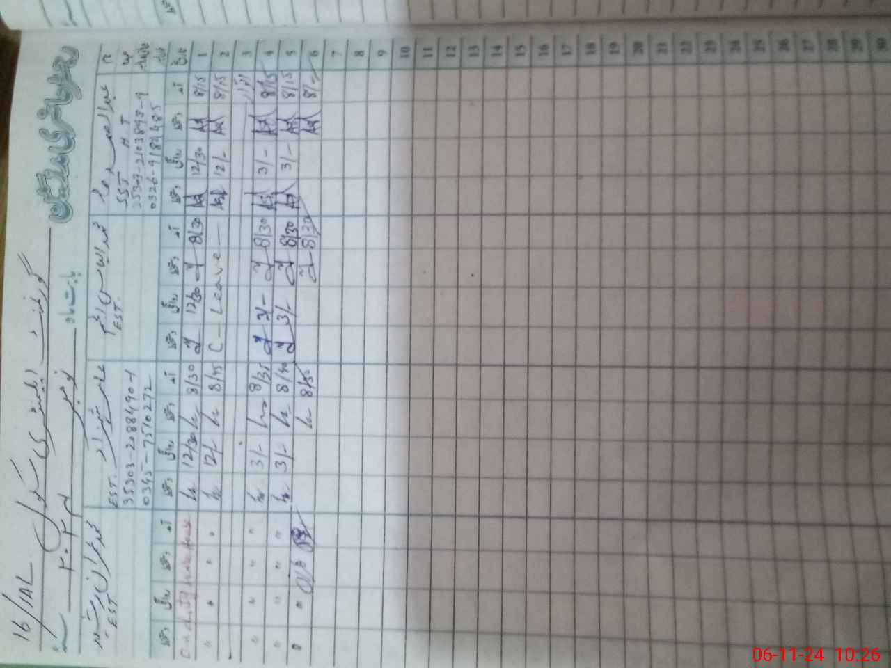 | CNIC | Full Name | Designation | R/C | Absence During Last Calender Month |